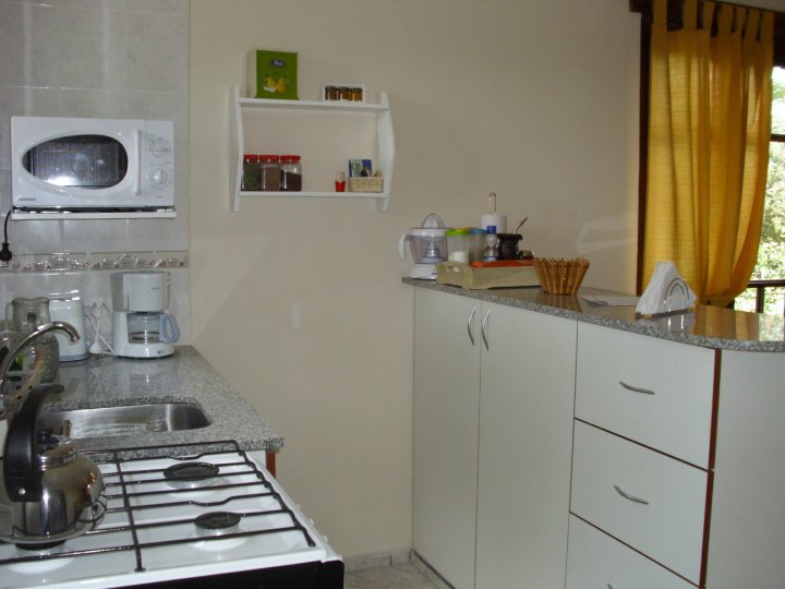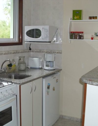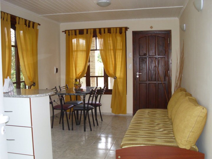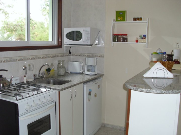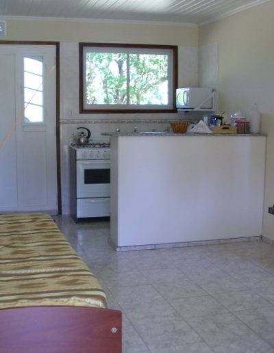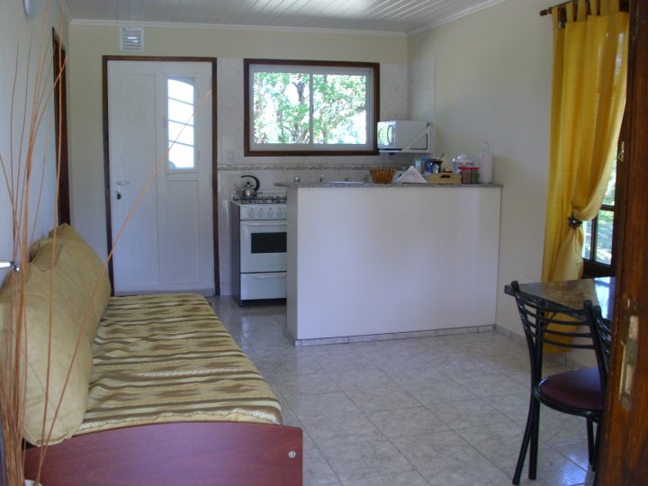 La casa cuenta con un salón con cocina americana 100% equipada, un baño y un dormitorio con cama matrimonial. En el salón se encuentra una cama marinera donde pueden dormir otras dos personas cómodamente.